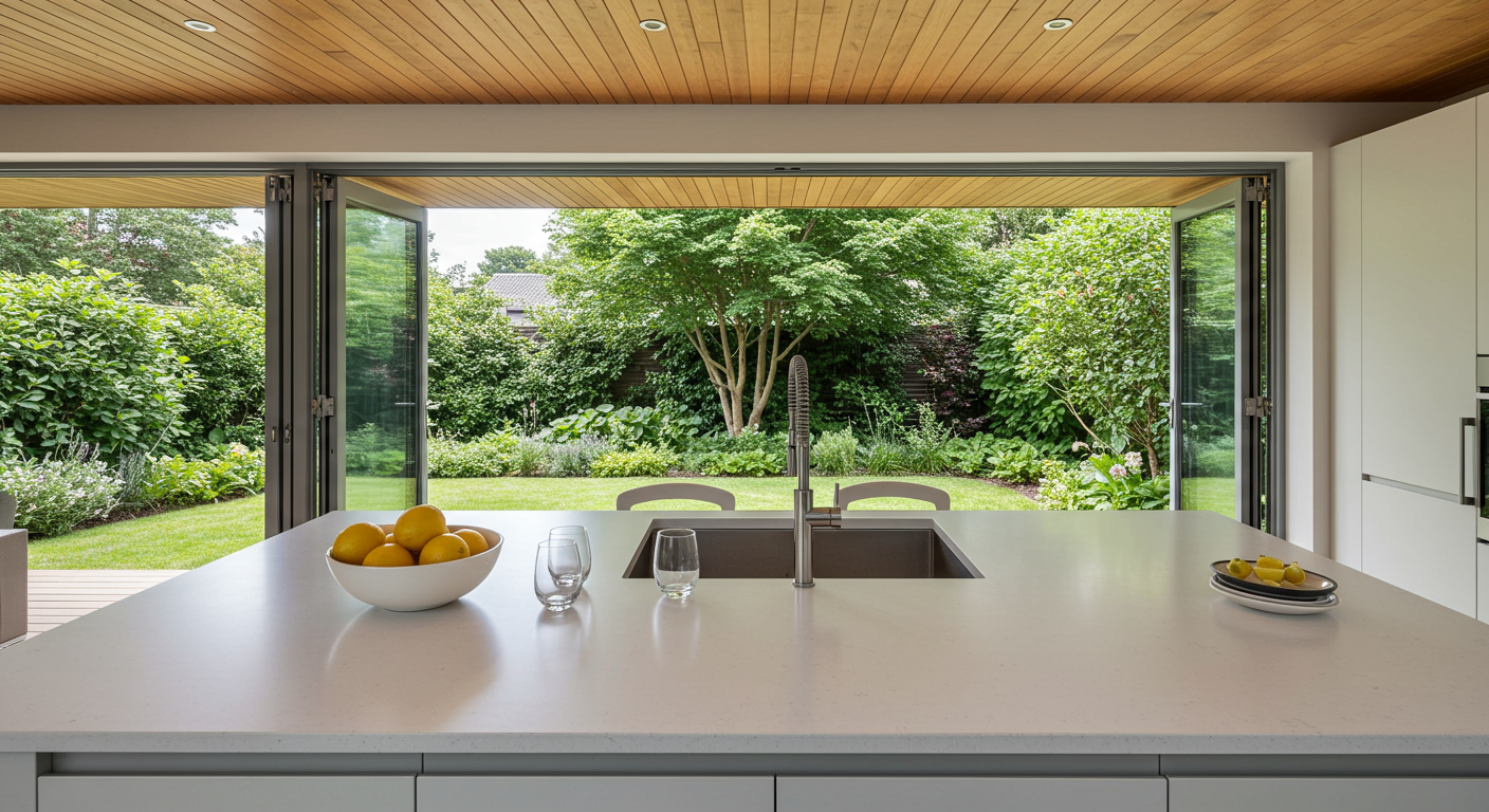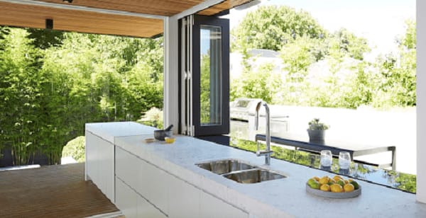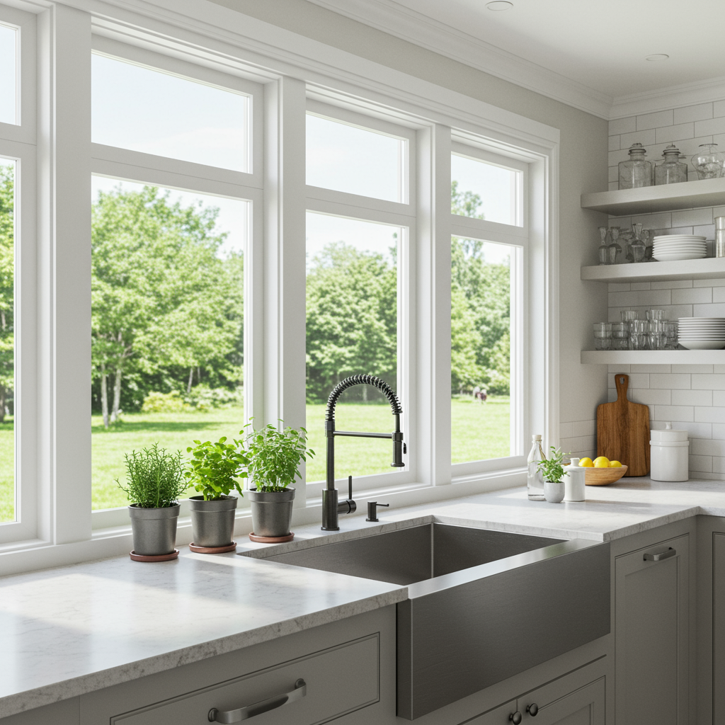 If you love outdoor entertaining, you’ll adore bi-fold windows. These windows can be opened to either side by pushing the panes toward the edges to create the perfect indoor-outdoor hybrid space. This style is ideal for crafting a kitchen pass-through window for seamless entertaining.